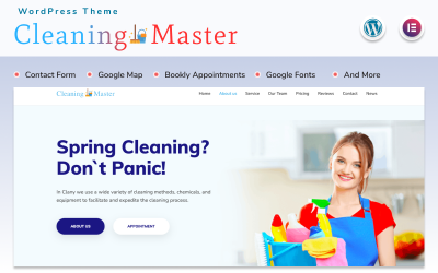 Cleaning Master: a sleek WordPress theme for the Cleaning Industry. Easy setup, stunning design, and customizable with Elementor. Build your landing page in minutes.